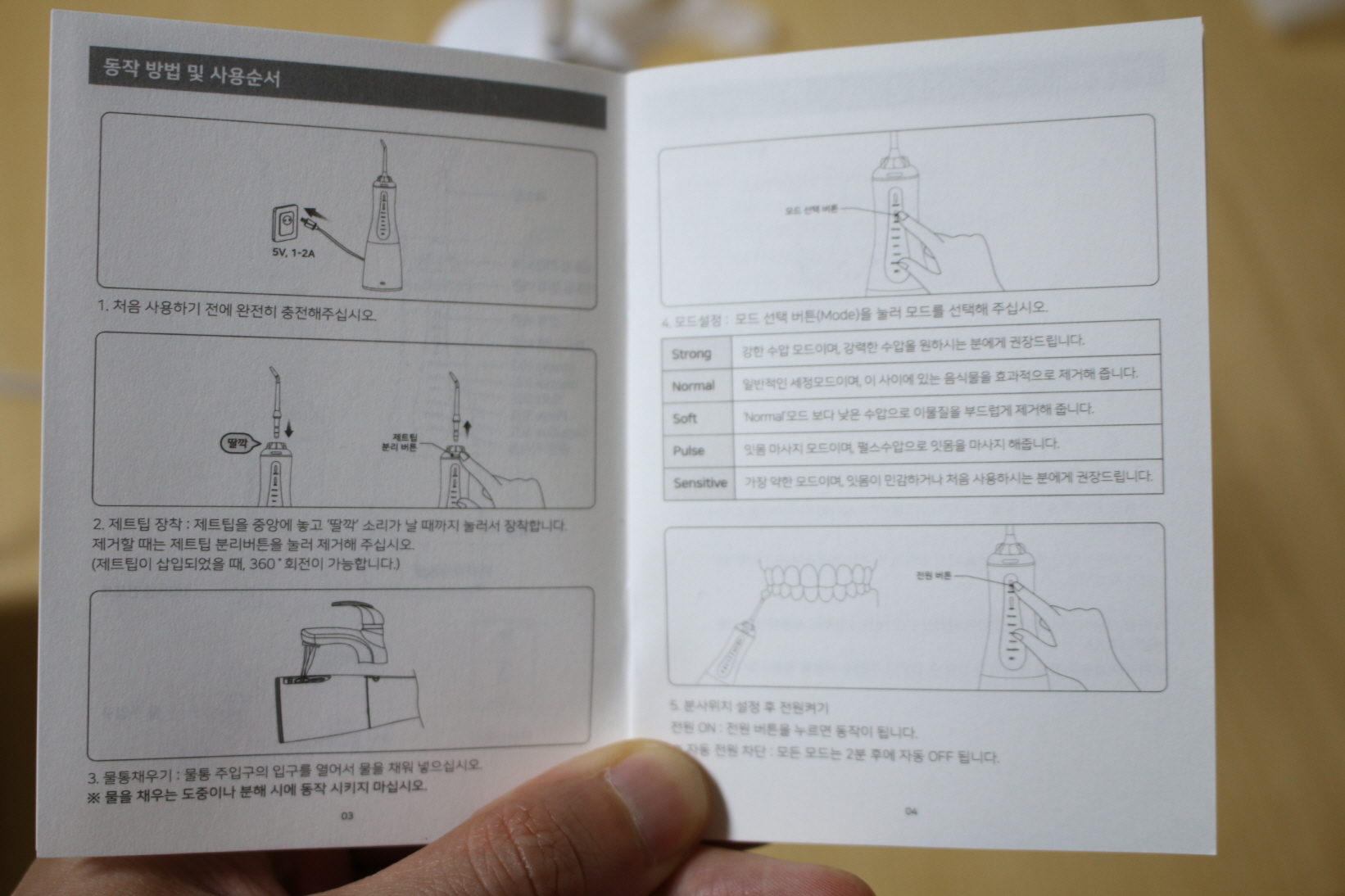 강도는 총 5단계로 Strong, Normal, Soft, Pulse, Sensitive 모드로 구분된다.