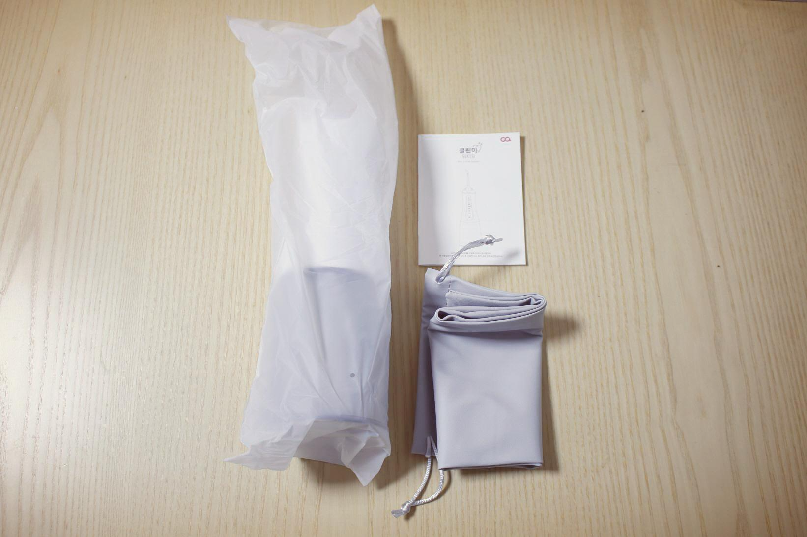 구성품은 워터픽과 휴대용으로 사용할 파우치, 제품 설명서이다.