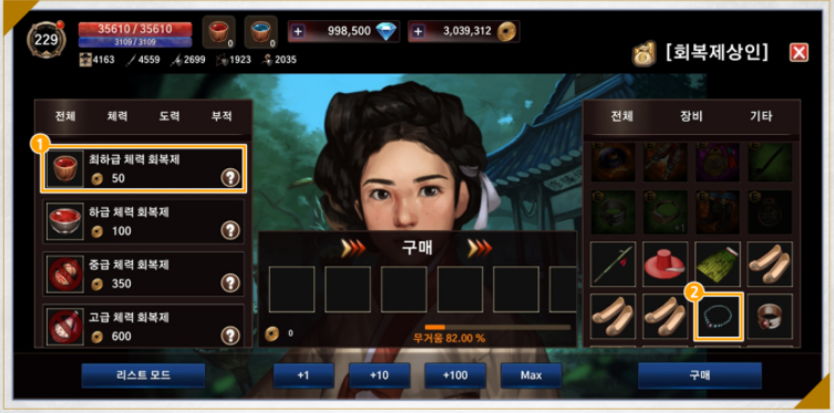 장비는 강화도 가능하며, 기본화폐는 엽전이고 다이아로 고급 상품거래가 가능할 것으로 보인다.