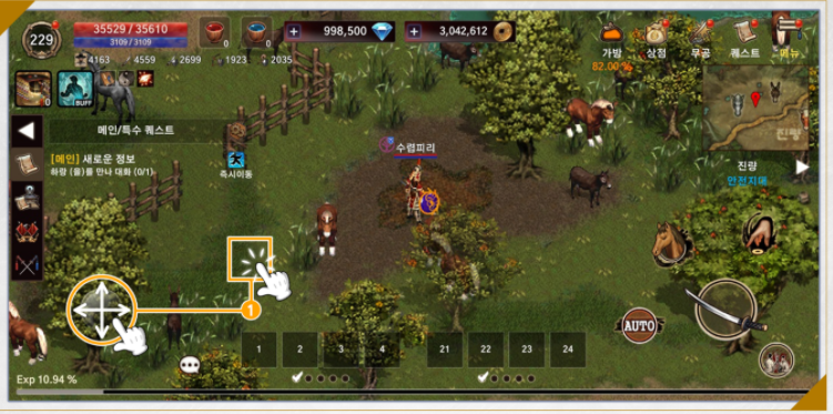8방향으로 이동이 가능해 보이고 인터페이스는 다른 모바일게임과 유사해 보인다.