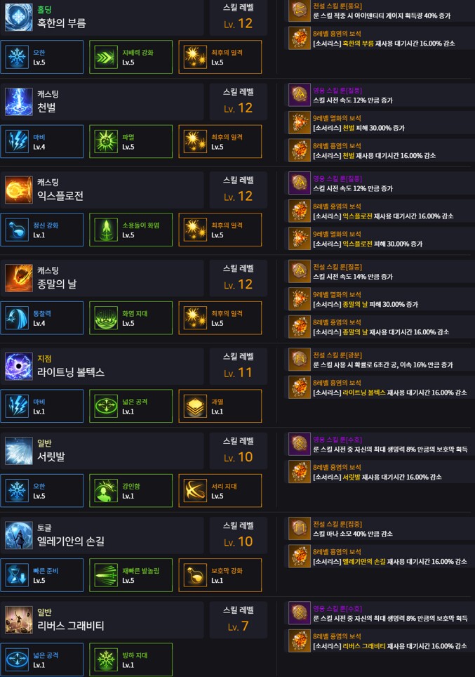 (속전속결) 모든 데미지는 캐스팅 스킬에 있고, 낮은 신속을 보완하기 위한 각인 채용