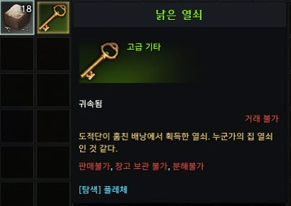 총 6곳의 낡은 주머니가 있는데 그 주머니에서 랜덤으로 낡은 열쇠를 획득할 수 있다.