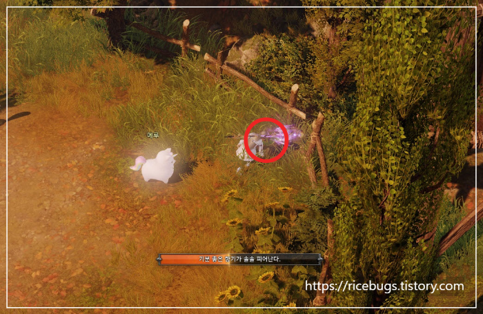 그러면 볏짚을 상호작용할 수 있게 되고 그 아래쪽에서 모코코를 획득할 수 있다.