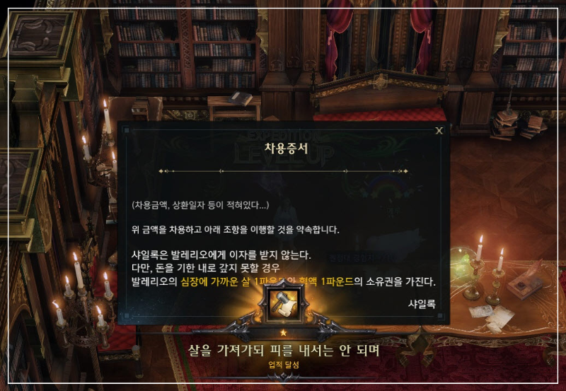 조건: 고리대금 업자 방에서 증서를 확인하기 또한 모코코를 모으다 보시면 그 방에서 습득
