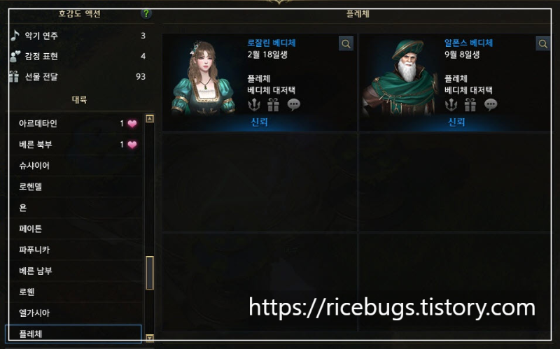 | 호감도 | 2명(로잘린 베디체, 알폰스 베디체) |