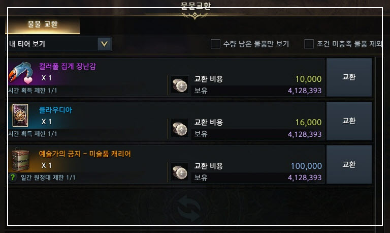 | 준비물 | 호칭-미술품애호가, 성향-담력350 |