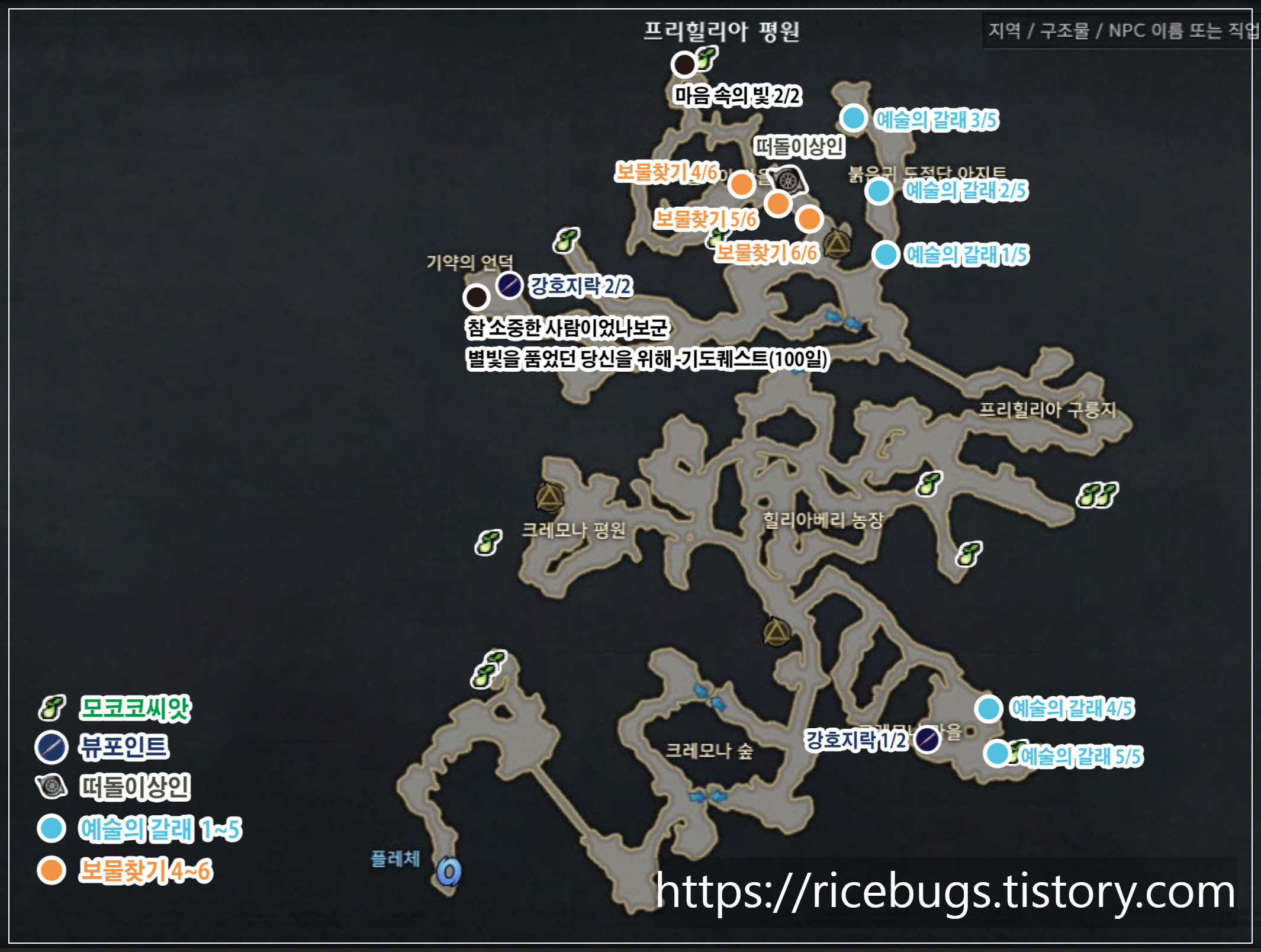 로스트아크 프리힐리아 평원 로아 모코코 위치 공략