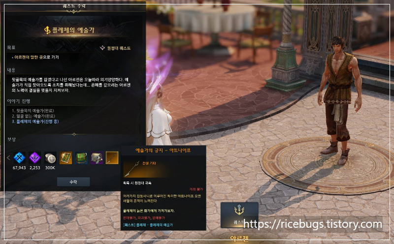 조건: 노란색 느낌표로 있는 플레체 예술가 퀘스트를 완료