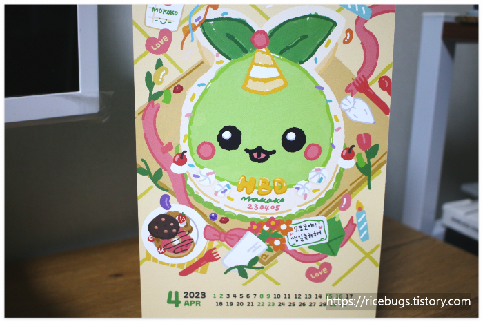 이번에는 4주년 기념 2023년도 모코코 캘린더, 유리컵 두 개를 리뷰한다.