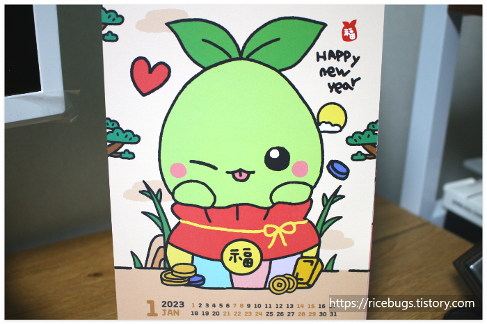 먼저 1월 달력이다. 복주머니에 귀엽게 들어가 있다.
