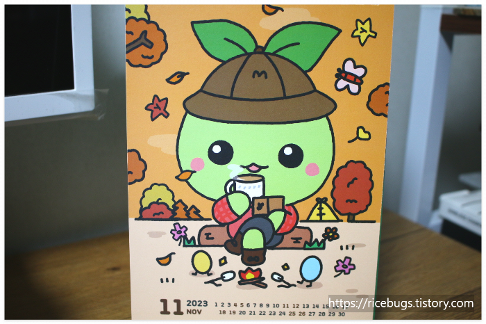 11월은 가을을 만끽하고 있는 귀여운 모자를 쓴 모코코를 볼 수 있다.