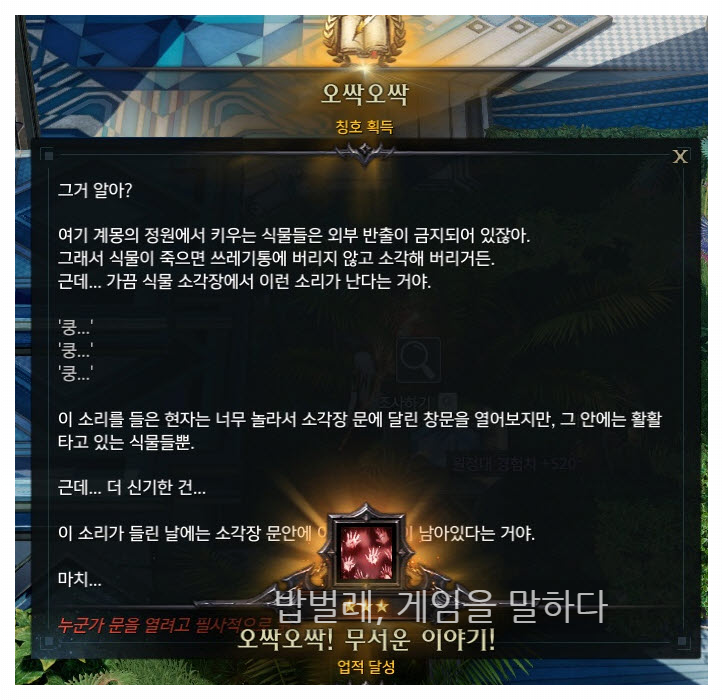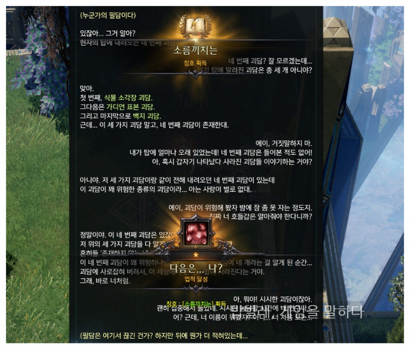 먼저 오싹오싹 칭호를 획득할 수 있는 오싹오싹 무서운 이야기를 총 세 군데 다녀야 한다.