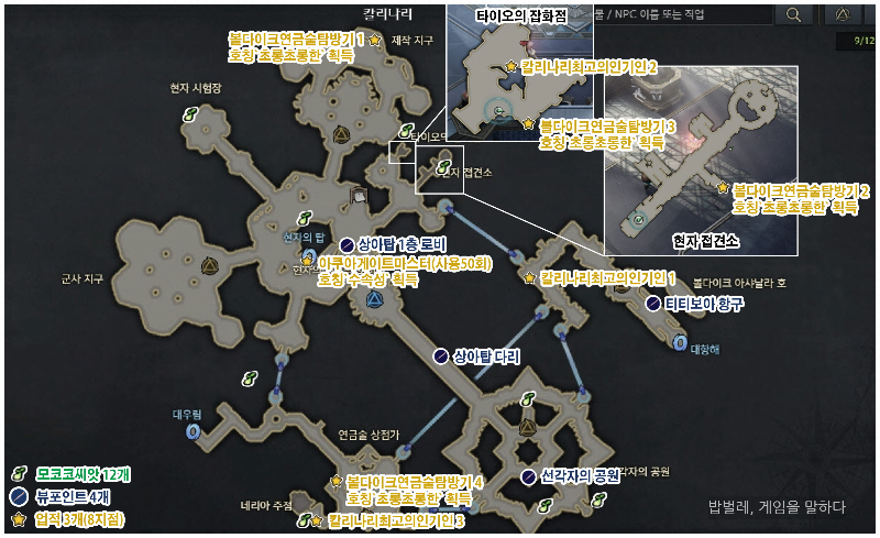 마지막으로 현자의 탑이다. 현자의 탑에는 총 5개의 업적 12개의 지점이 있다.