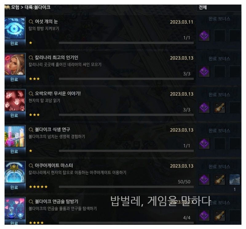 이상으로 볼다이크 대륙 업적과 에포나 등에 대하여 공략을 마치겠다.