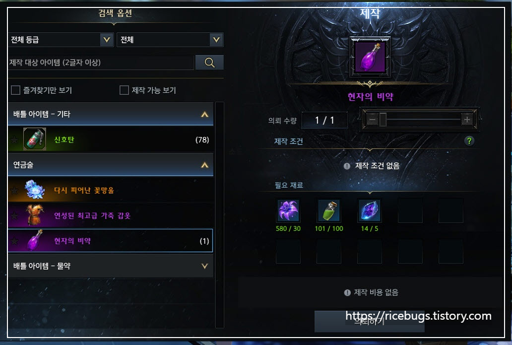 로스트아크 볼다이크의 마지막 모코코를 먹기 위한 재료인 '현자의 비약'